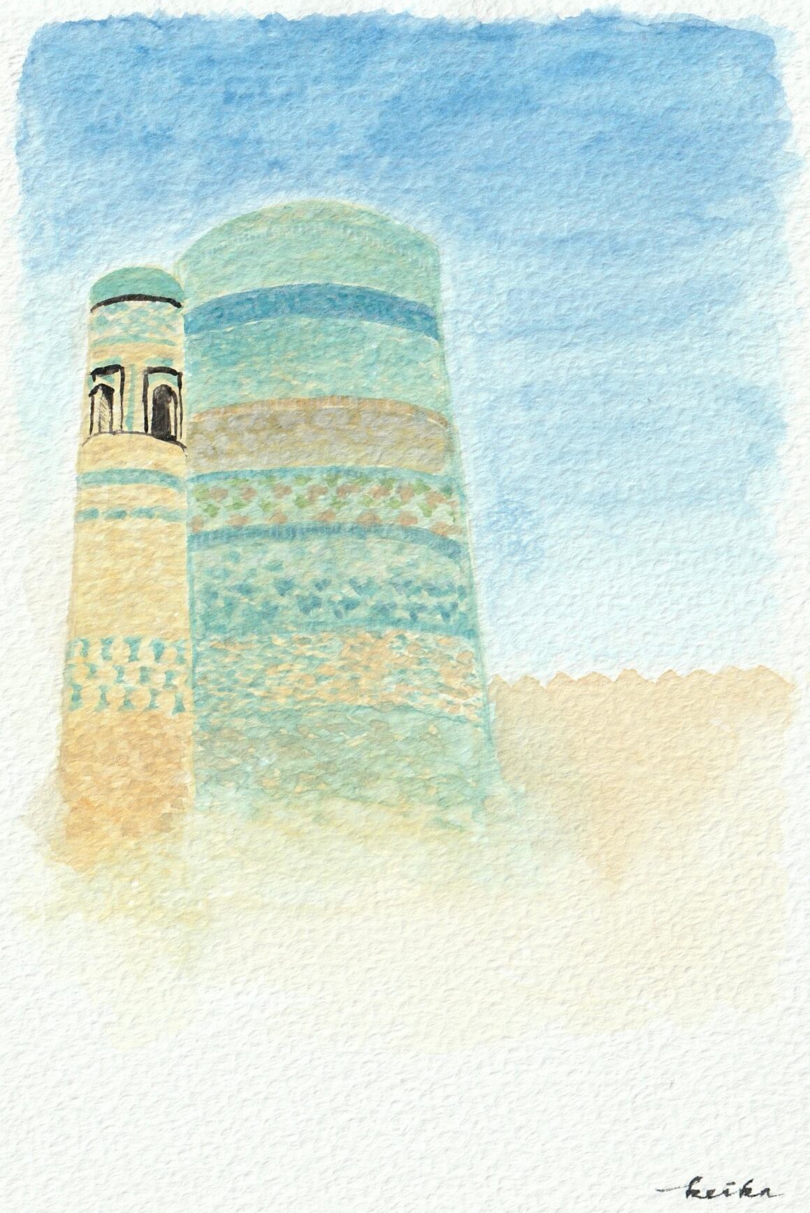 旅の記憶シリーズより、ウズベキスタン・ヒヴァのカルタミノルを描いた一枚です。