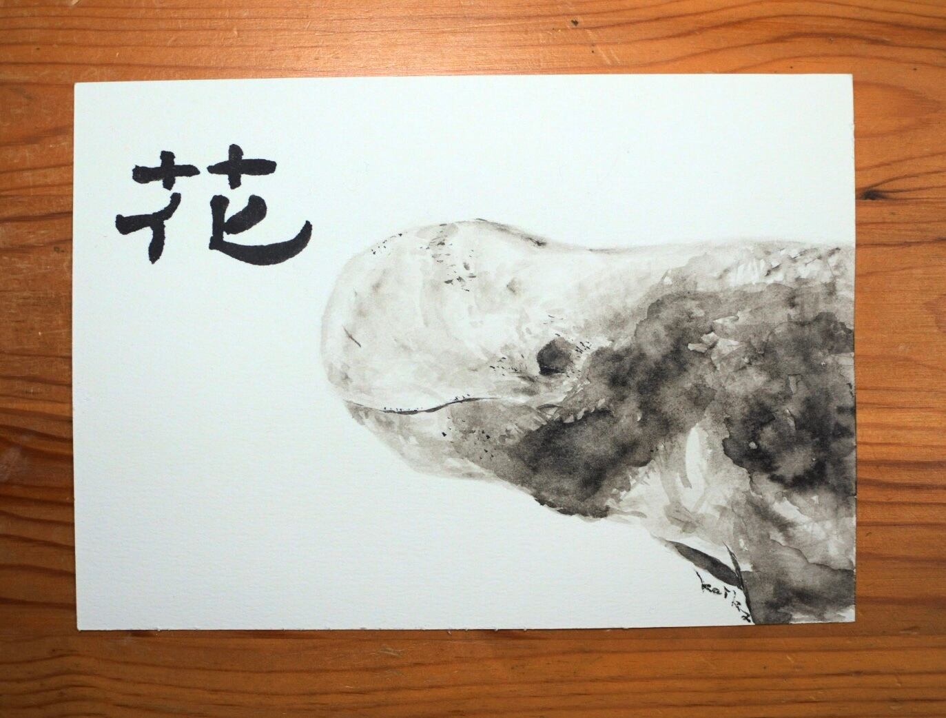 体の模様が花のように見えることから名づけられたハナゴンドウの、可愛らしくて穏やかな表情を「花」の文字に込めました。