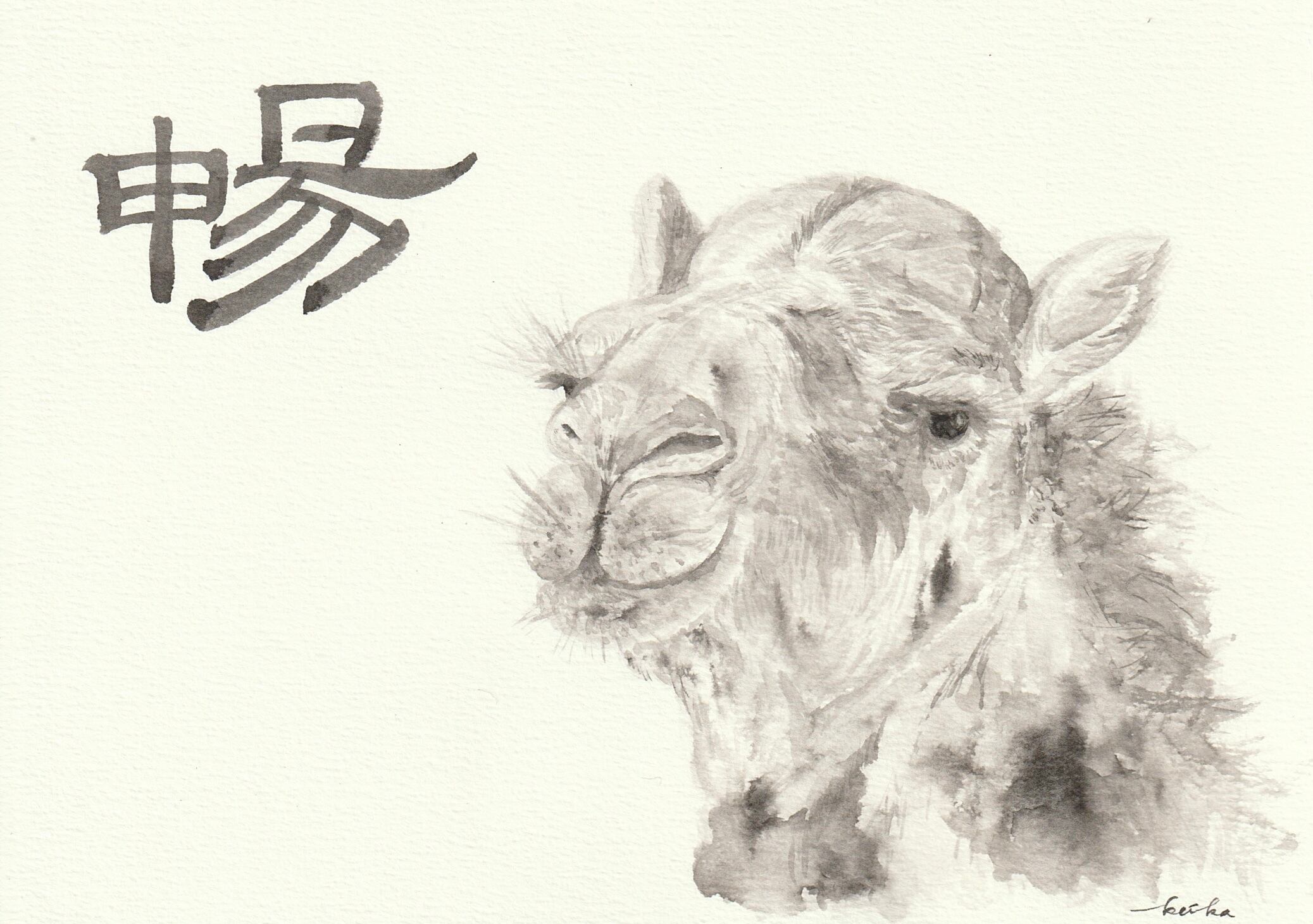 暢(ラクダ)|イラストと一字のハガキ