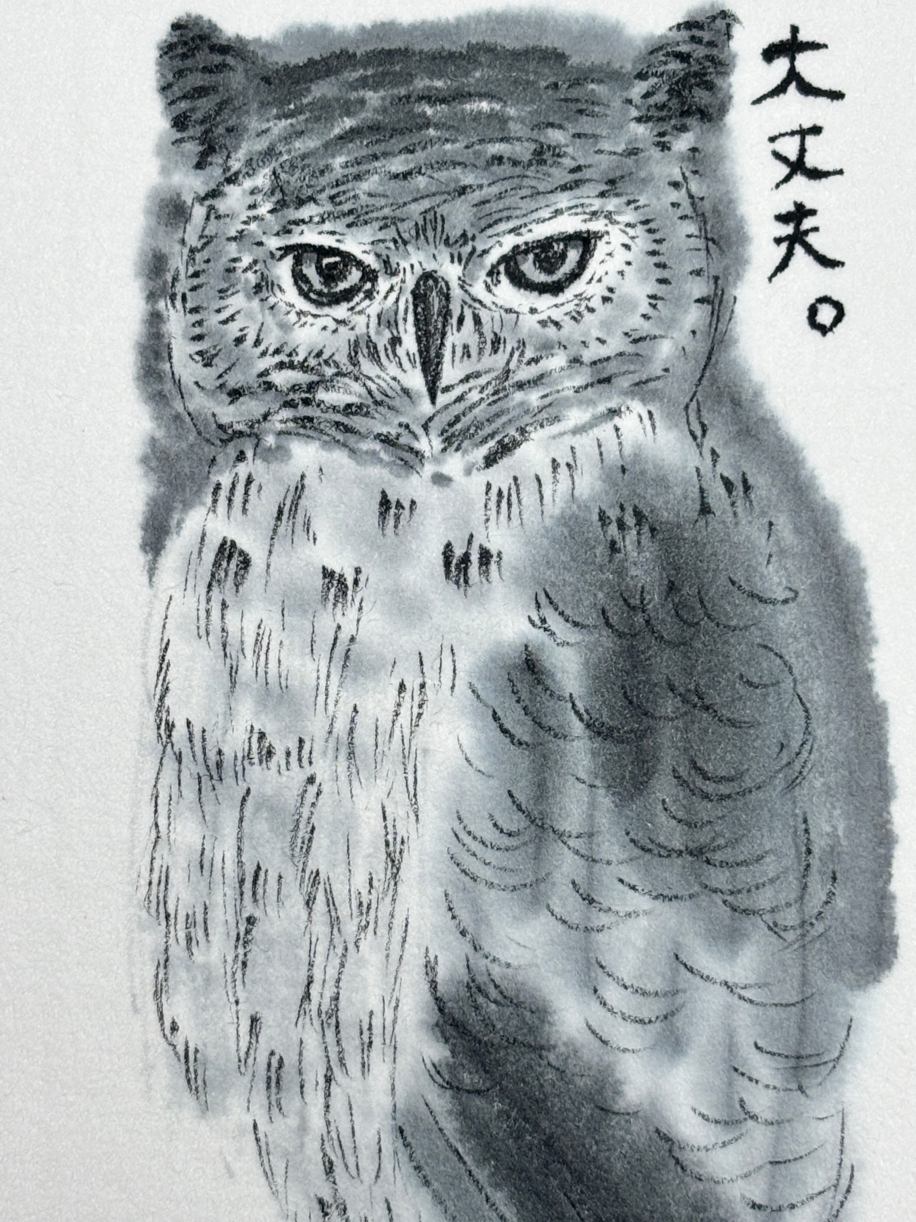 水墨画ハガキ〈ミミズクの絵と、小さなことば〉